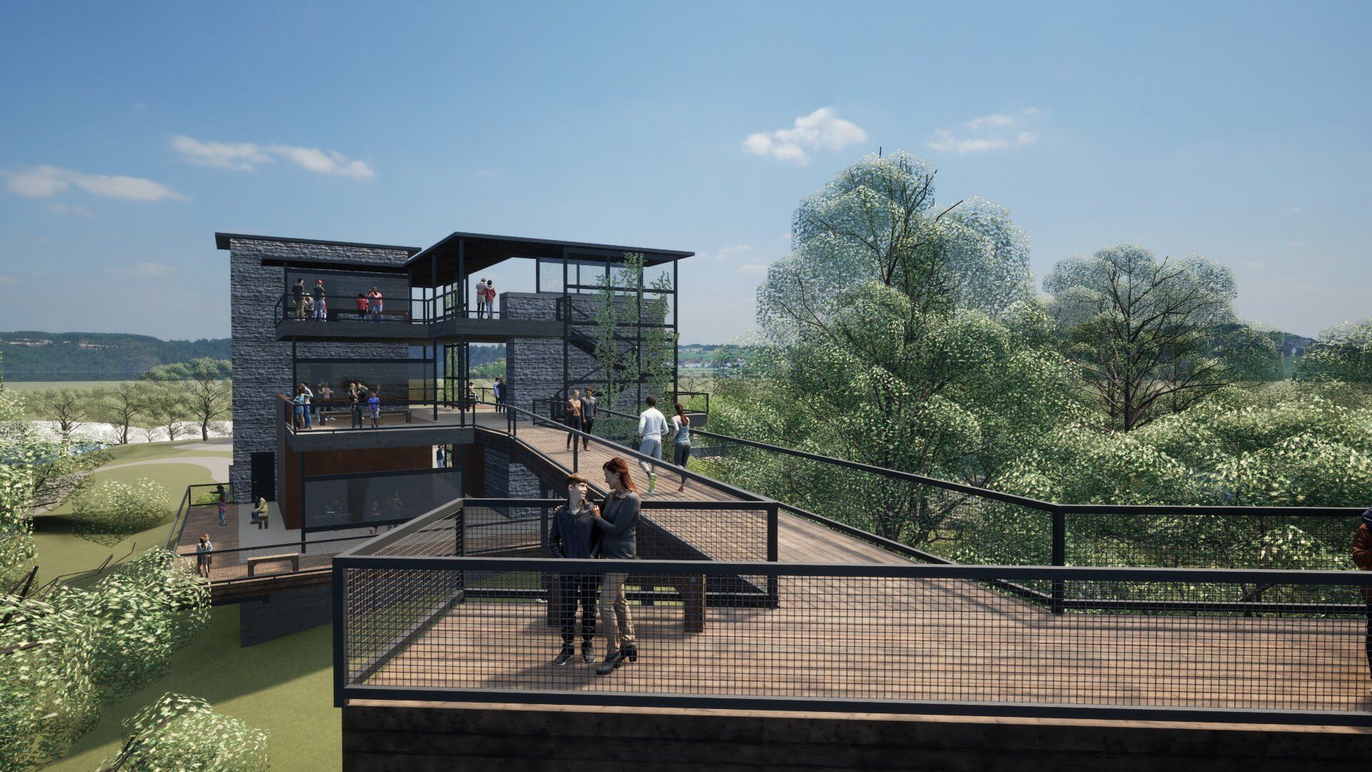 Canopy walk with access to observation tower decks