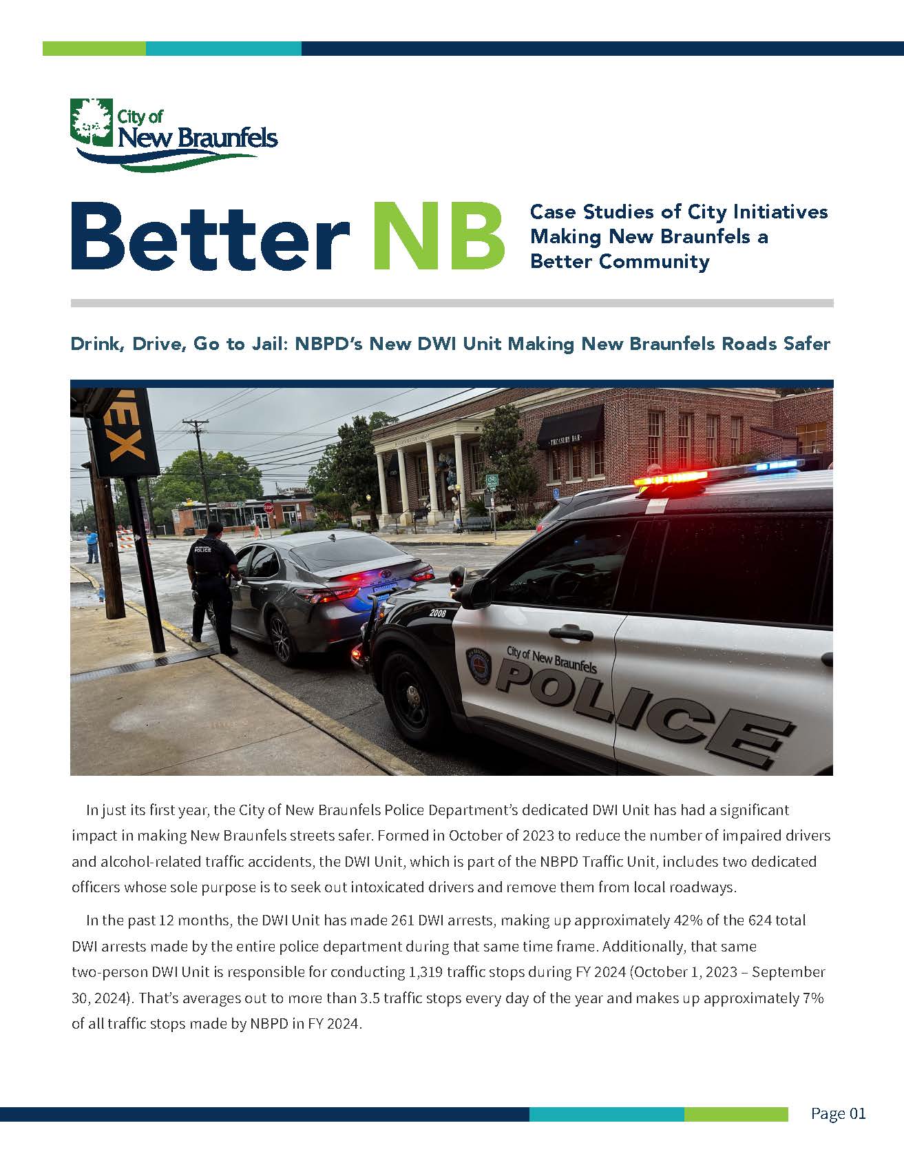 You'll find articles on new equipment, new initiatives, cost-saving measures, and other steps taken by the City in an effort to make New Braunfels a better place to live, work, and play.