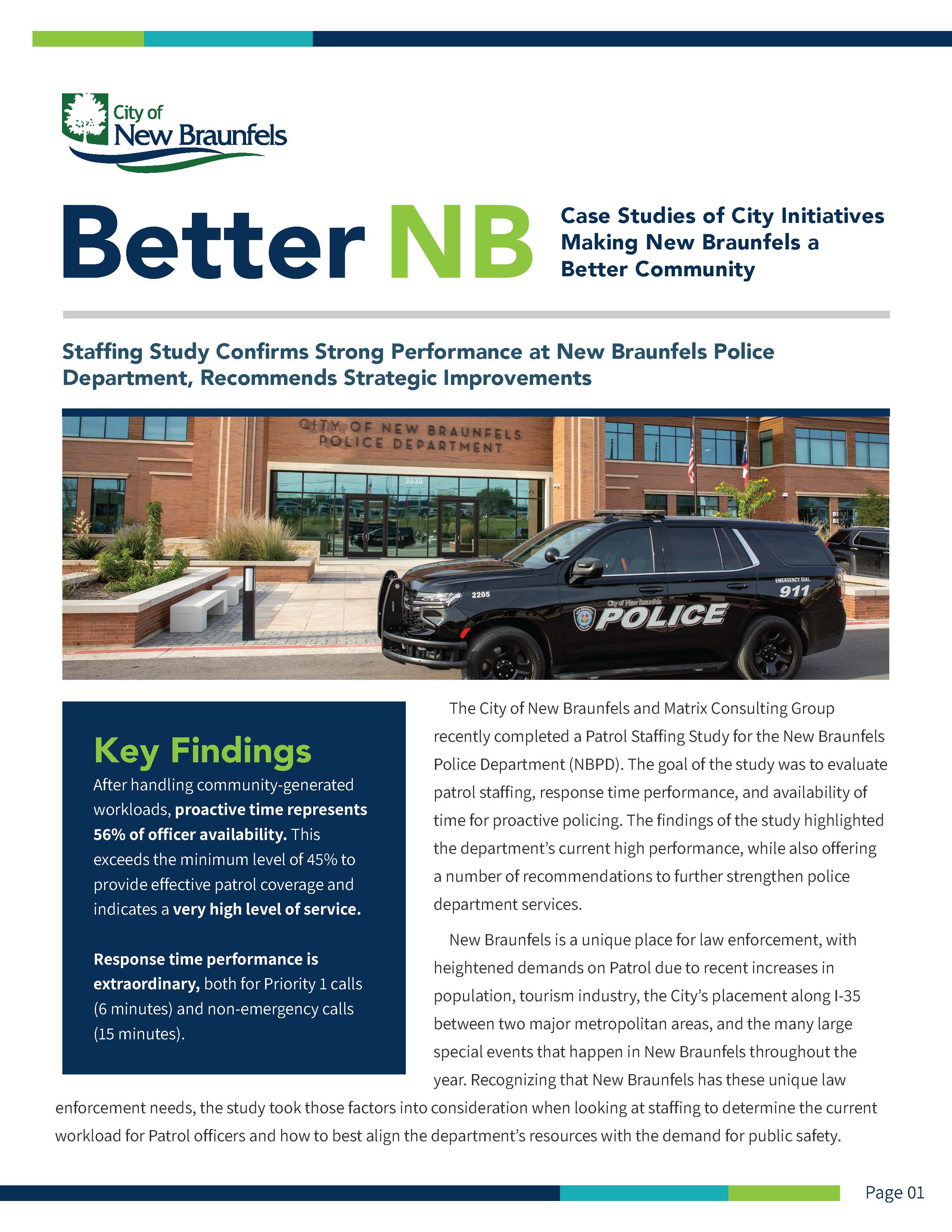 Staffing Study Confirms Strong Performance at New Braunfels Police Department, Recommends Strategic Improvements