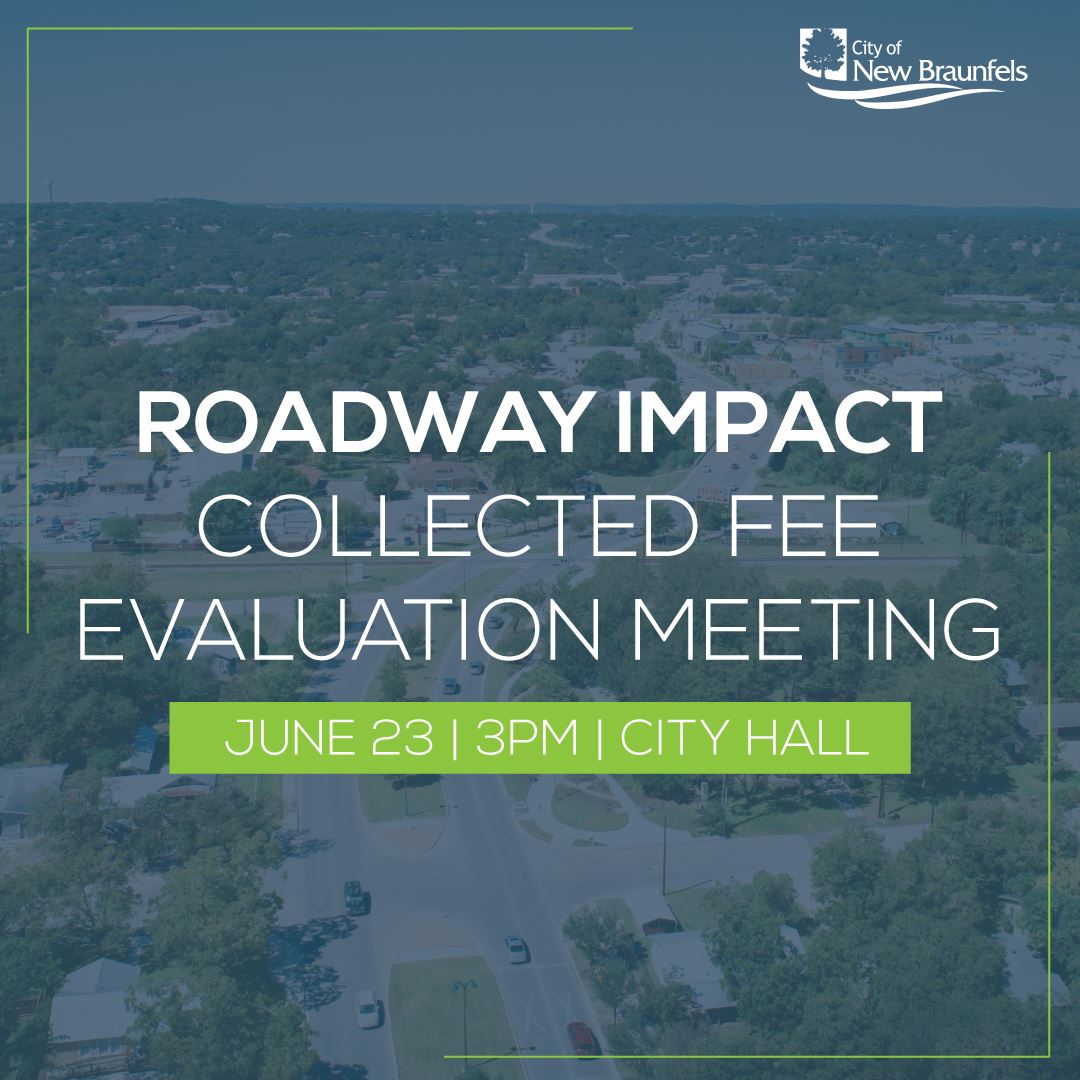 The City of New Braunfels Transportation & Capital Improvements Department is hosting a public meeting on Thursday, June 23rd, 2022, in order to provide information to the community on potential collected fee changes associated with the Roadway Impact Fee Program. The program is authorized under Chapter 395 of the Texas Local Government Code and defined as a fee imposed against new development to pay for the construction or expansion of infrastructure facilities necessitated by new development.