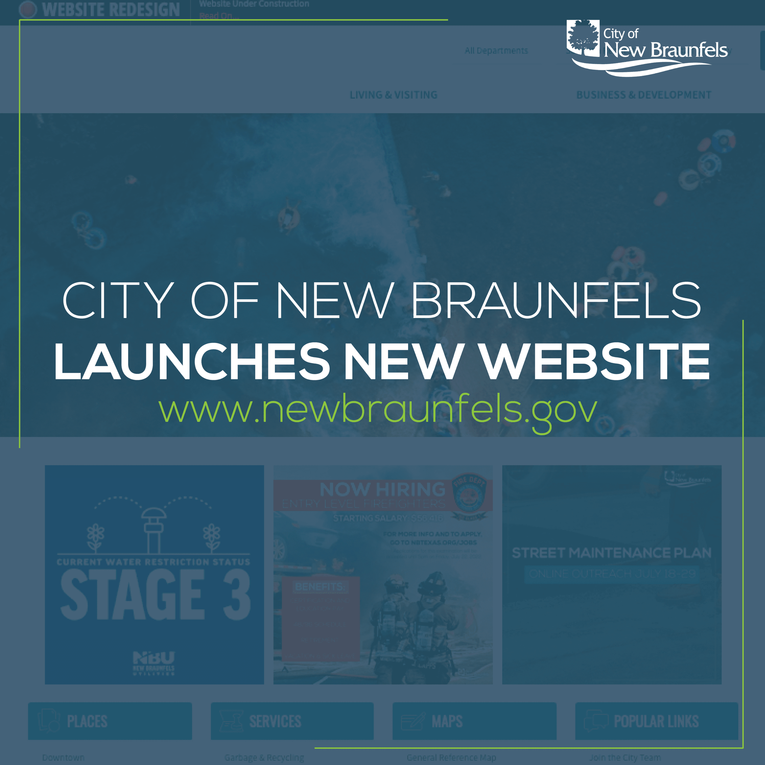 After a more than year-long effort, the City of New Braunfels has launched its new website under the new domain www.newbraunfels.gov. The newly redesigned website includes a more modern look, streamlined navigation, and a new tool for residents to use to report an issue or submit a request.