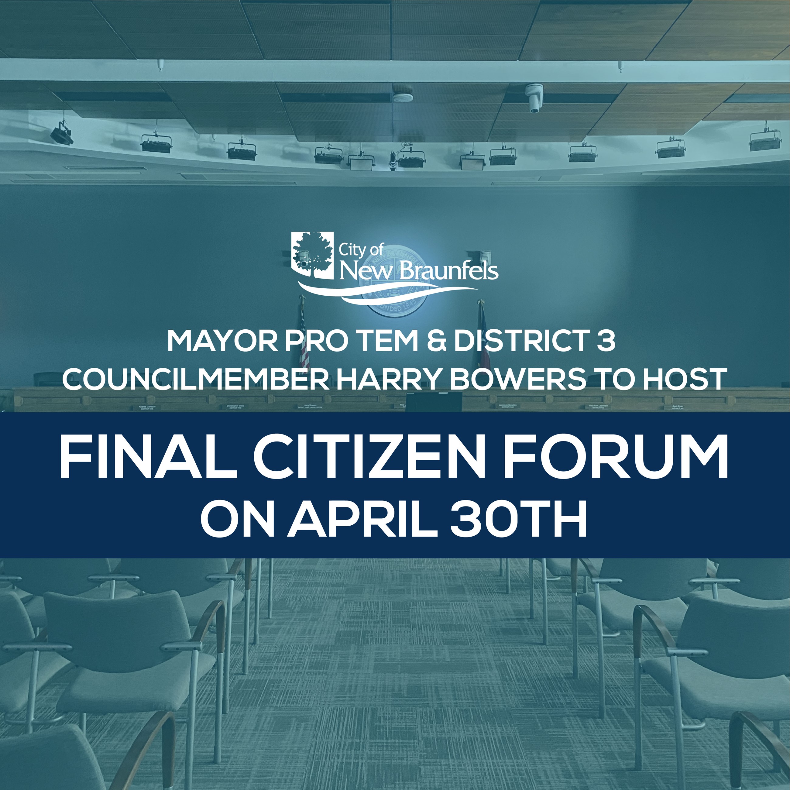 Harry Bowers, the Mayor Pro Tem and District 3 representative on New Braunfels City Council, will host the final Citizen Forum of his term on Tuesday, April 30th starting at 6pm at New Braunfels City Hall.