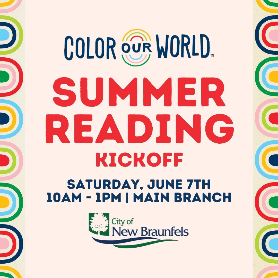 The New Braunfels Public Library’s 2025 Summer Reading Program kicks off on Saturday, June 7th, 2025, launching a summer’s worth of reading fun and activities. This year’s theme is “Color Your World!” which encourages residents to join with family, friends, and neighbors to not only catch up on reading this summer, but to get creative through reading, art, writing, and exploring all the colorful ways to learn and have fun this summer.