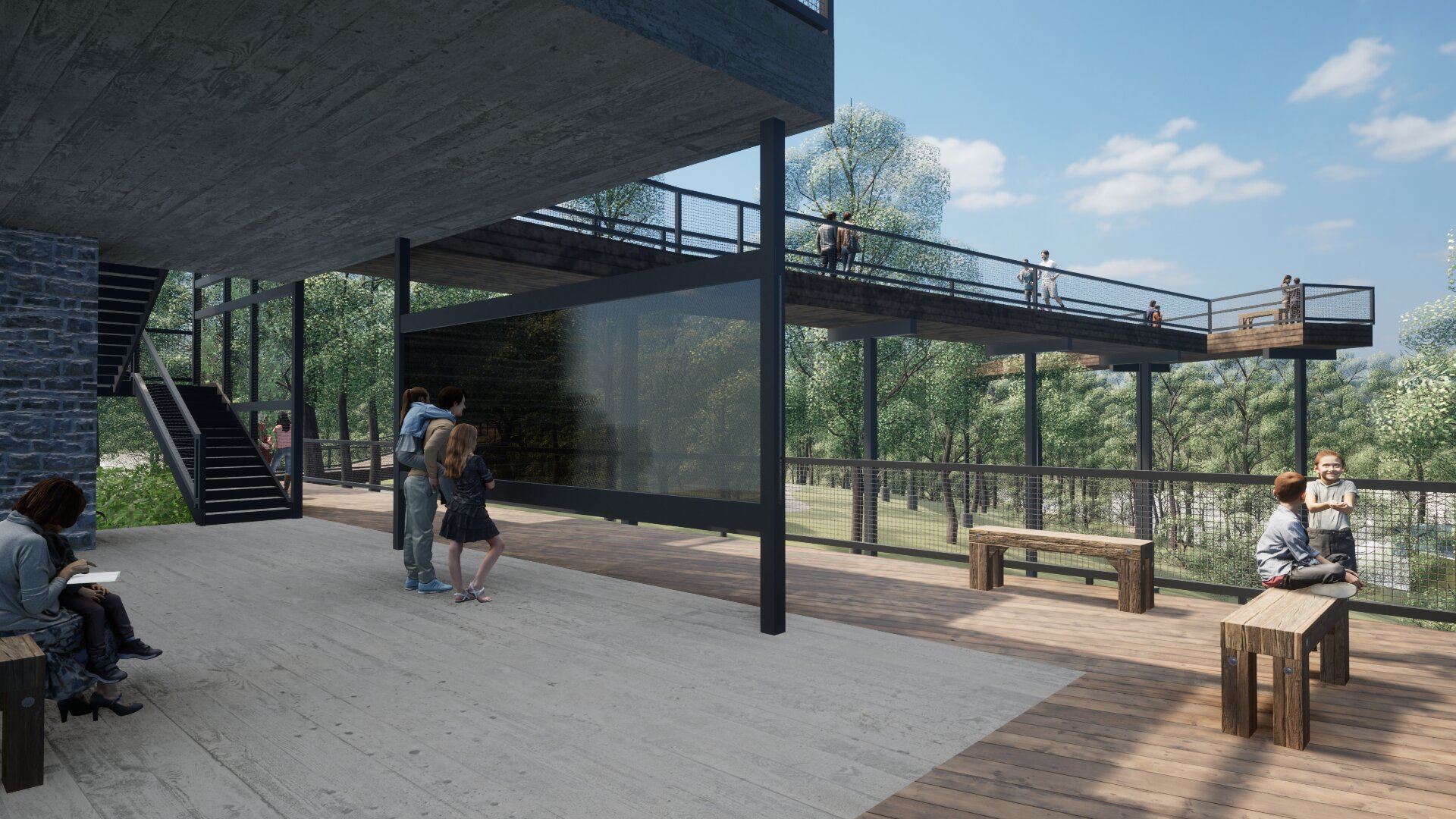 Canopy walk with access to observation tower decks