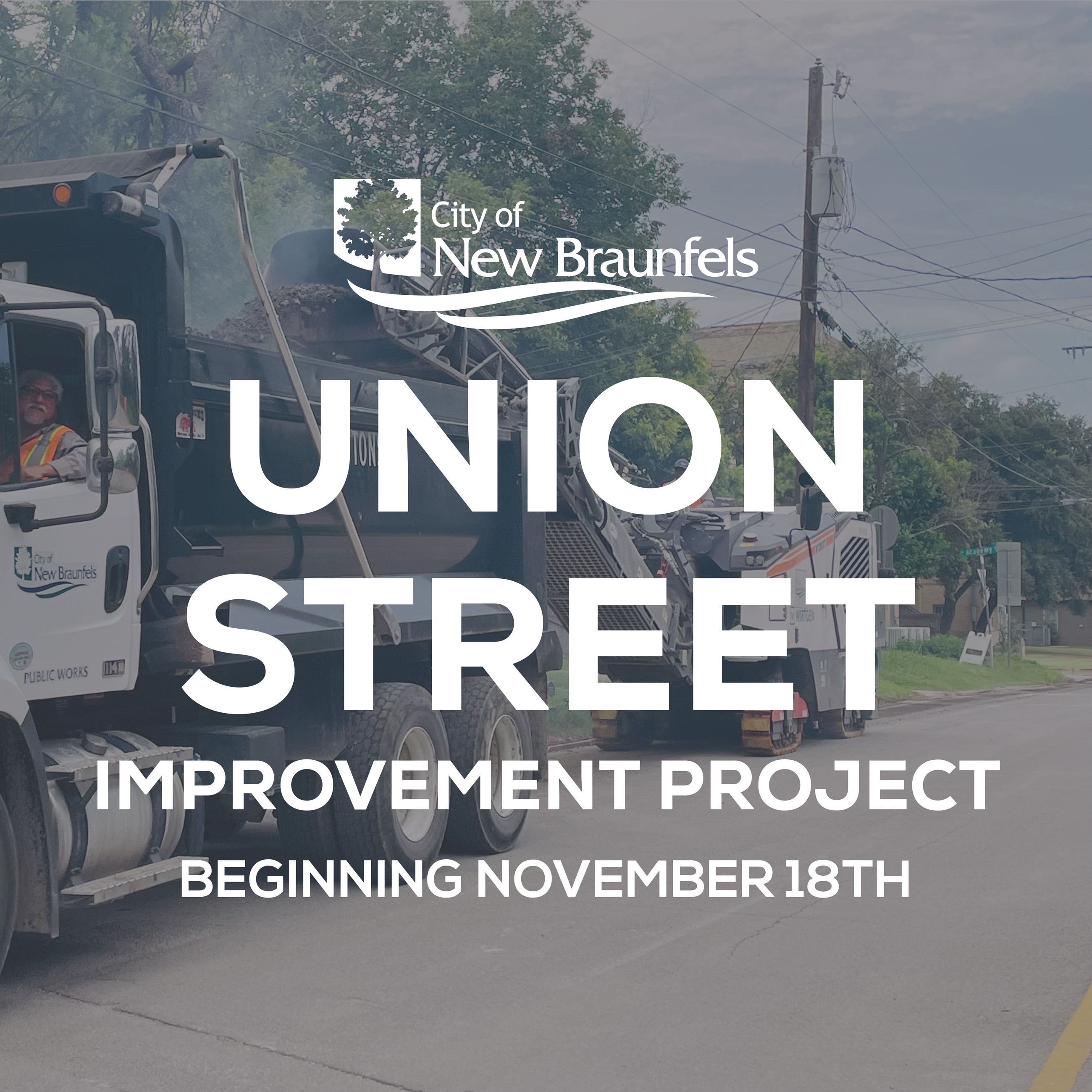 On Monday, November 18th, 2024, contractors for the City of New Braunfels will begin work on the Union Street Improvement Project, which includes curb and sidewalk replacements, intersection improvements, and water main replacement by New Braunfels Utilities from San Antonio Street to Lincoln Street. The City’s portion of this project is $1.6 million which is being funded by the voter-approved 2023 Bond. Construction is expected to last into Spring of 2025 (depending on weather and other factors).